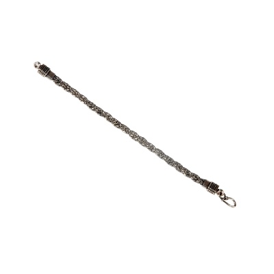 Bracciale in argento a treccia. Più fili di argento sono stati intrecciati, creando una morbidissima treccia, fermata da due finali in argento liscio con greca. Chiusura con gancio a s.